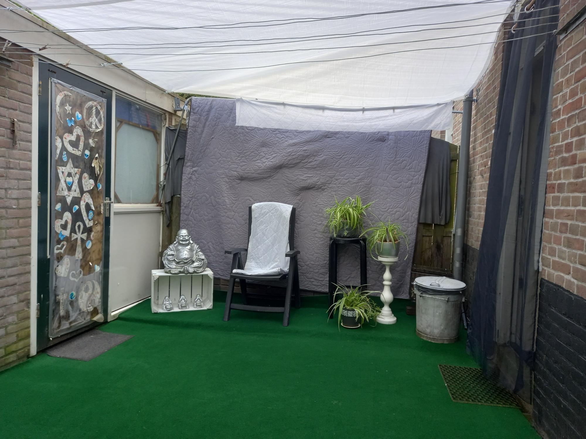 Het afdekzeil gebruiken we ter vervanging van het oude lekkende zeildak van ons tuinpaviljoen.